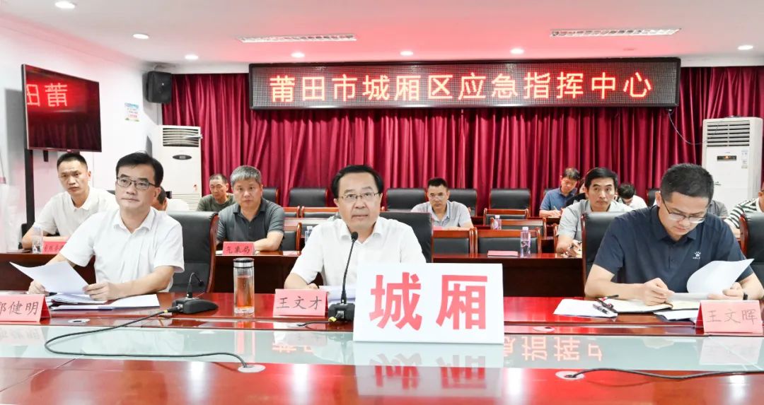 7月25日,城厢区召开全区防御第3号台风“格美”工作视频部署会,贯彻落实上级防汛防台视频会议部署精神,对我区防御第3号台风“格美”工作进行再调度、再动员、再部署。区委书记王文才主持会议并讲话,区领导王文晖、郭健明出席会议。