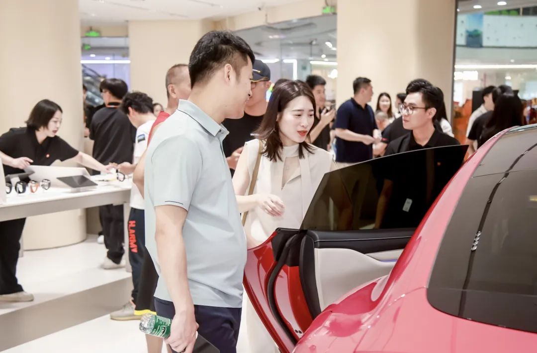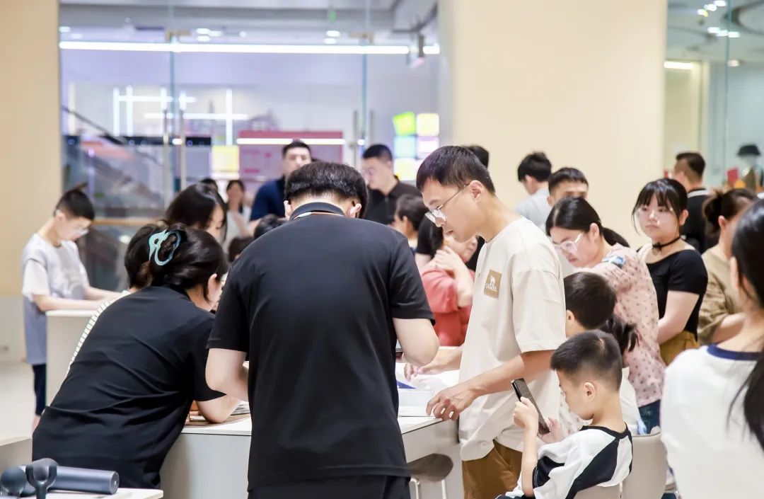 体验店占地面积近600平方米,采用米色、银灰色调搭配冷色灯光,设计现代简约,科技感十足。现场最热门的无疑是汽车展区,这里展示了小米最新的智能汽车产品,除了经典的SU7外,小米首款SUV车型YU7也惊艳亮相。YU7定位“豪华高性能SUV”,自5月预发布以来,以黑科技配置迅速引爆市场。现场不少消费者进行实车驾乘,享受全新的智能出行体验。