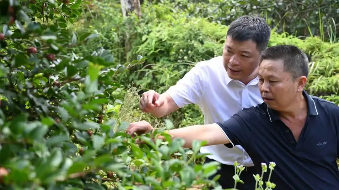 郑松青首先来到常太镇外东坪村,实地查看了油茶长势和牛樟芝种植情况,鼓励村民立足资源禀赋,做强特色产业,以产业振兴带动农民增收。在内东坪村,郑松青认真听取了竹林资源盘活情况汇报,要求村“两委”要以开展“强村”带“弱村”行动为契机,积极学习强村发展经验,努力拓宽发展思路,进一步提高村财收入。
