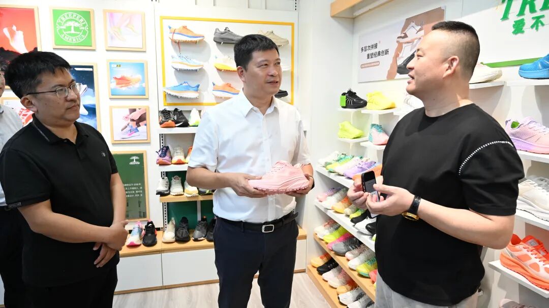 郑松青一行先后来到三威鞋业、树标体育、力合鞋业和新元鞋业。每到一处,他走进生产车间和展厅,详细了解企业生产经营、产品研发和市场销售情况,并与企业主面对面交流座谈,询问当前发展中存在的困难问题和产业发展建议,鼓励企业坚定发展信心,在科技创新、产品研发、品牌打造等方面持续发力,不断增强企业核心竞争力和发展新动能。
