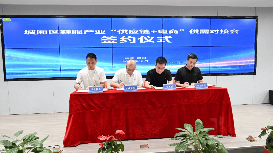 经过前期对接与洽谈,一批达成初步合作意向的制造企业与电商企业现场进行了签约。其中,“莆田鞋”与三威、华骏、鲸动三家企业签约,新梓芽与富拓签约,枫度贸易与鲸动体育签约。这批合作的签约落地,标志着“城厢制造”与“电商渠道”的深度合作迈出了坚实一步。