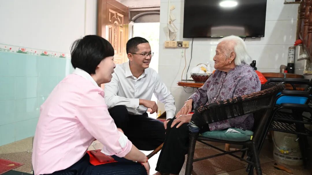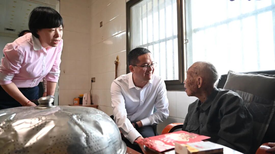 在百岁夫妻石子英、周淑珍家中,王文晖与两位老人亲切交谈,细致关心他们的身体状况与日常生活。两位老人精神矍铄、思维清晰,乐观地分享平时的起居习惯与家庭趣事,言语间充满温情与智慧。王文晖被老人的积极心态所感染,不时与他们轻松互动,现场洋溢着温馨祥和的气氛。他细心叮嘱老人保重身体,祝愿他们健康长寿、阖家幸福。
