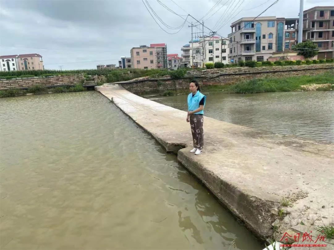 6月4日,城厢区灵川镇河道专管员张丽英巡查径里溪张边段水位,检查该河段汛期安全。