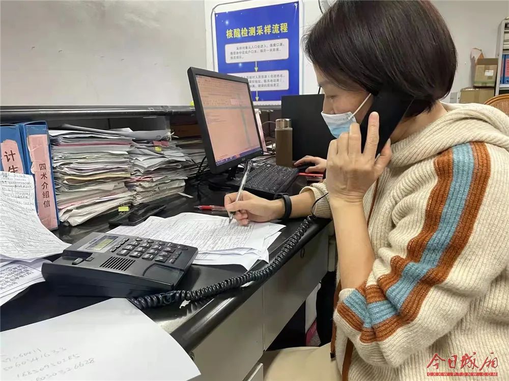 自开展疫情数据排查工作以来,怀孕8个月的她与同事们一起日夜奋战,“白+黑”电话排查。她说:“流调过程中会遇到一些不理解和不接、挂电话,对着电脑核、填信息等一天下来,经常嗓子沙哑、眼睛干涩。现在正是疫情防控的关键时刻,越是困难,越要心齐,一起上。”