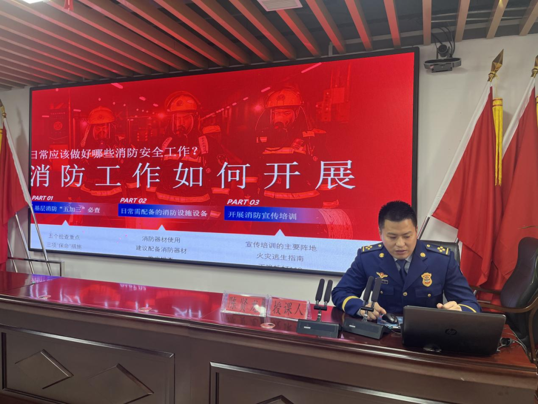 培训邀请城厢区消防救援大队助理工程师、一级指挥员陈贤龙参谋为大家授课。陈贤龙在消防防火和灭火岗位上已深耕16年,经验极其丰富,他以火灾警示案例和详实数据为切入点,围绕消防安全知识、“三合一”场所专项整治、“5+3”排查治理、电动自行车治理、消防器材的使用以及消防安全隐患的排查等方面进行细致且全面的讲解,重点强调要多宣传、多排查,在源头消除安全隐患。