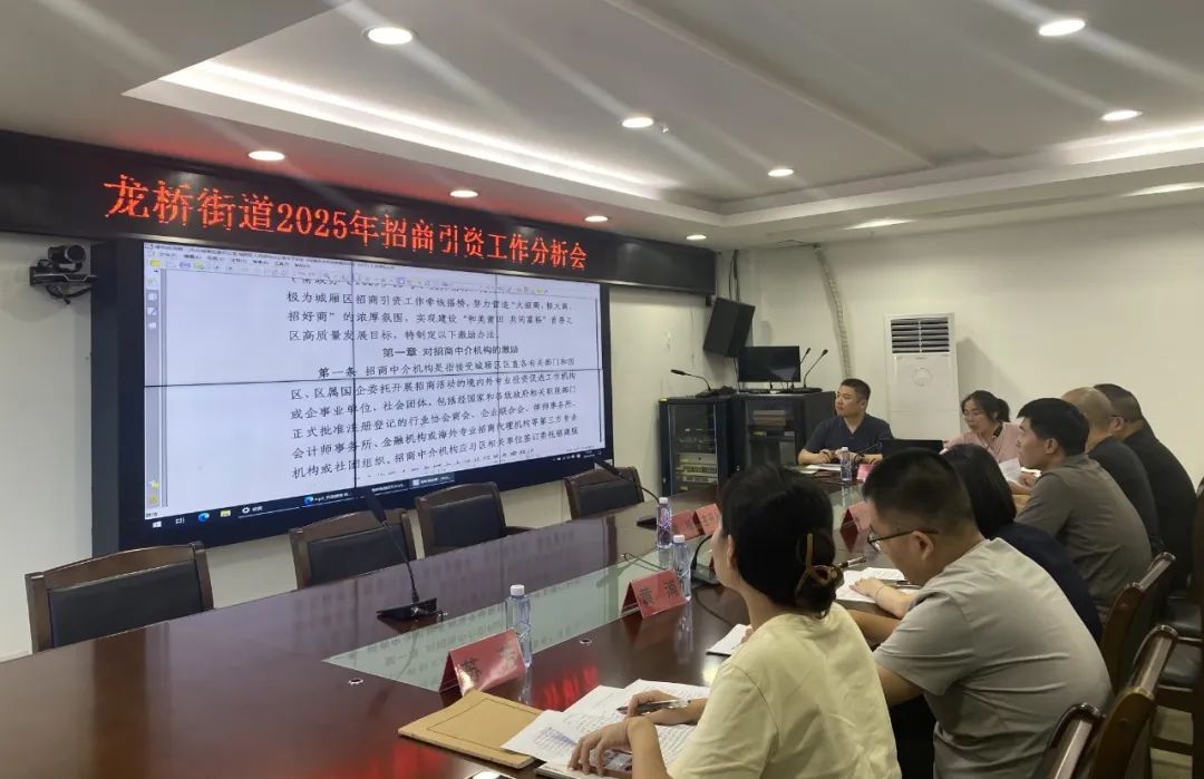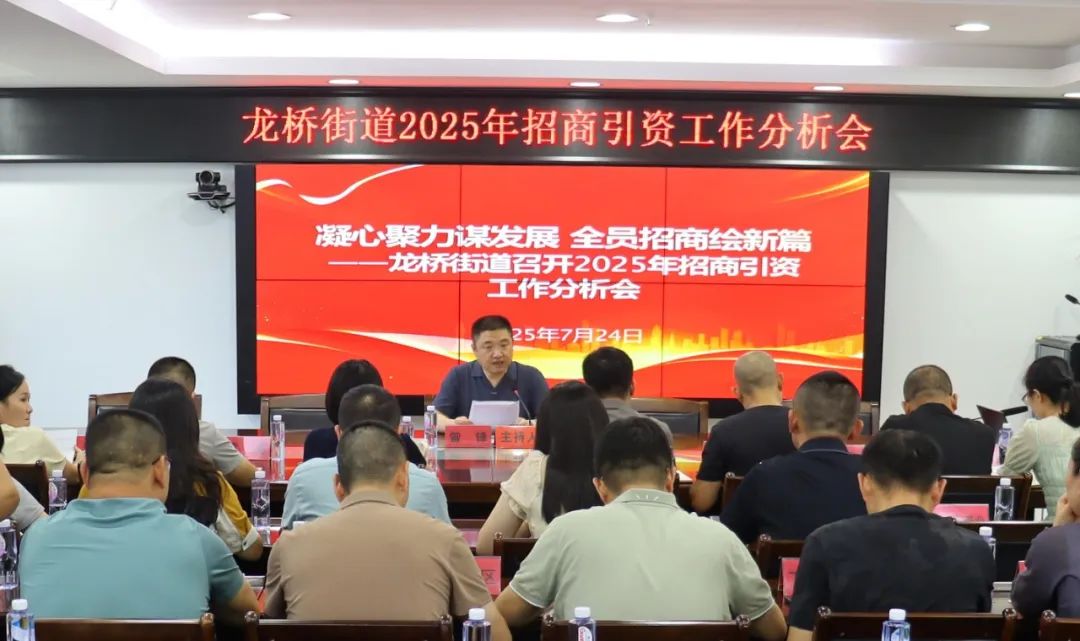 为贯彻落实区委“七大行动”上半年总结会工作部署,全力推动街道经济高质量发展,7月24日下午,龙桥街道召开2025年招商引资工作分析会。龙桥街道班子成员、村居书记、商会代表等近40人参加。