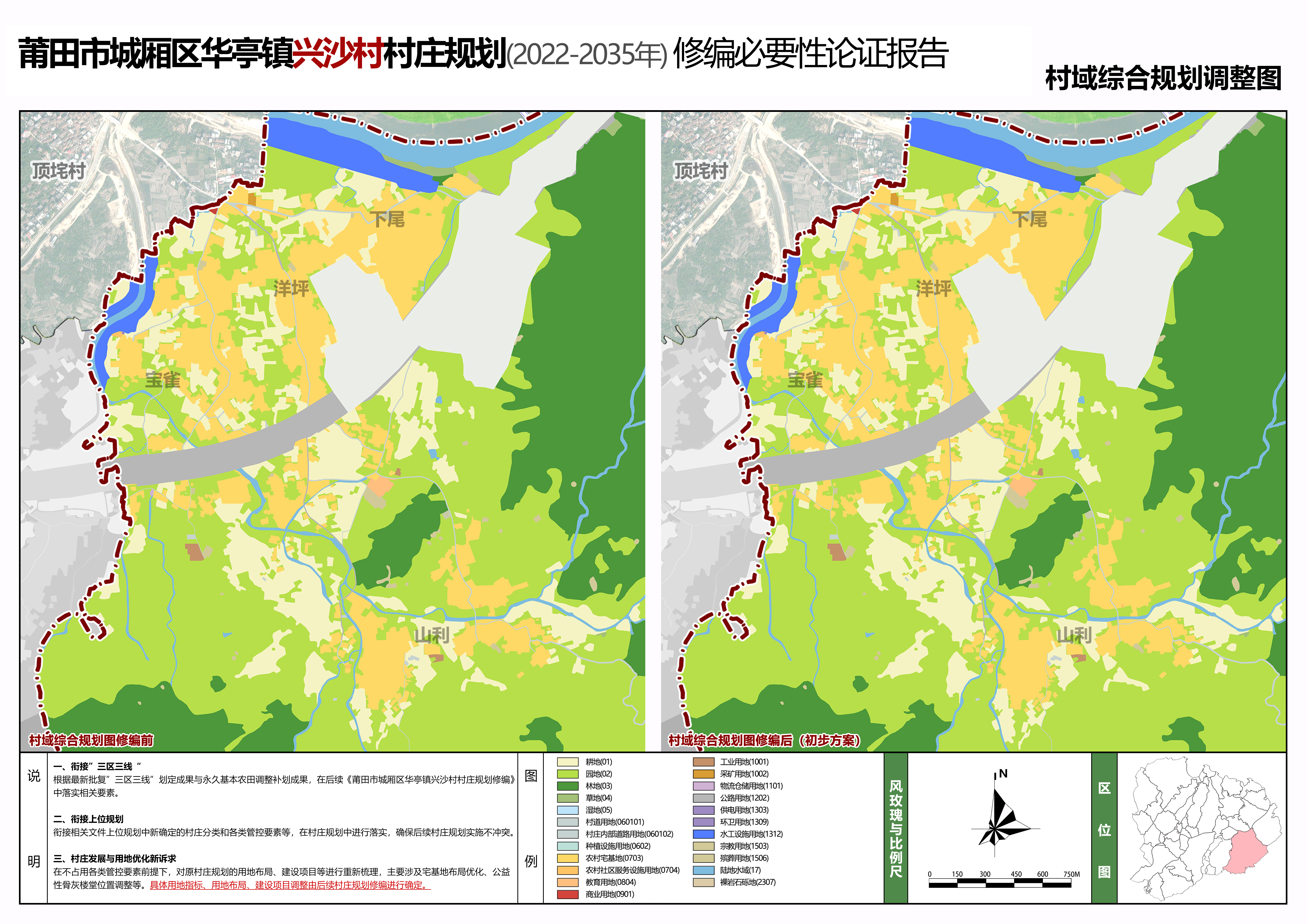 兴沙村位于城厢区华亭镇,辖山利、下尾、洋坪、宝雀4个自然村。规划四至范围:东临樟塘村,西接后枫村,南连灵川镇,北至木兰溪;规划用地面积约1071.28公顷。《莆田市城厢区华亭镇兴沙村村庄规划(2022-2035年)》于2022年10月12日经区政府批复(莆城政〔2022〕82号)。根据省政府已批复的莆田市国土空间总体规划及自然资源部下发的“三区三线”划定成果,拟对原村庄规划进行修编。