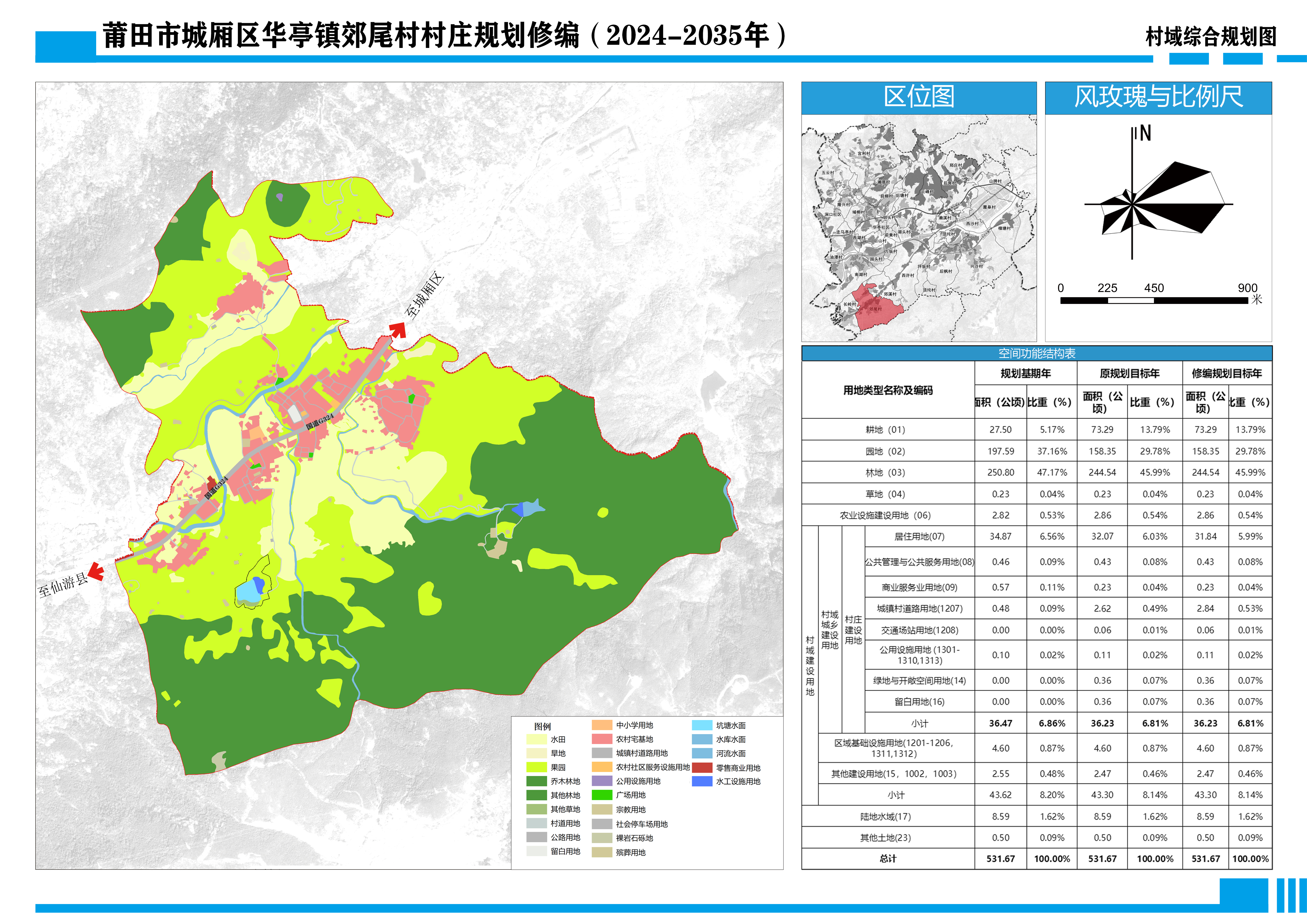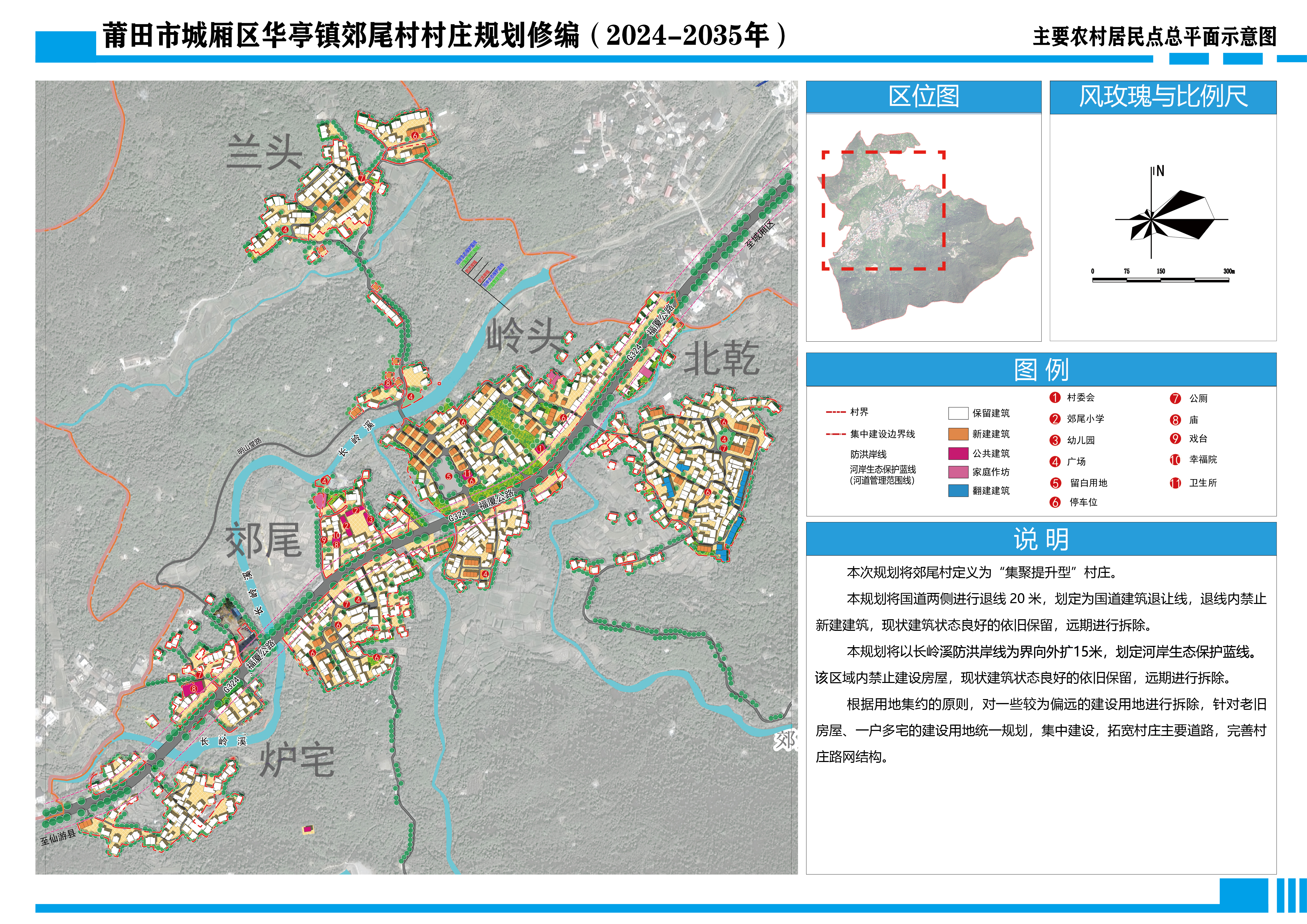 郊尾村位于城厢区华亭镇,辖兰头、岭头、郊尾、北乾、炉宅等5个自然村。规划四至范围:东与长岭村交界,南与坪洋村相连,西接郊溪村,北枕南湖;规划用地面积约531.67公顷。《莆田市城厢区华亭镇郊尾村村庄规划修编(2024-2035年)》由华茗设计集团有限公司、福建岚栖规划设计有限公司编制。按照《中华人民共和国城乡规划法》、《福建省村庄规划编制指南(试行)》及《莆田市村庄规划动态调整机制 (试行)》等法律法规、相关文件要求,现将规划方案予以公示,征求公众意见,公示时间为2025年5月7日至2025年6月7日止。在公示期限内,村民若有意见,可来电或来信向莆田市城厢区自然资源局反映,最终修编方案以区政府审批为准。
