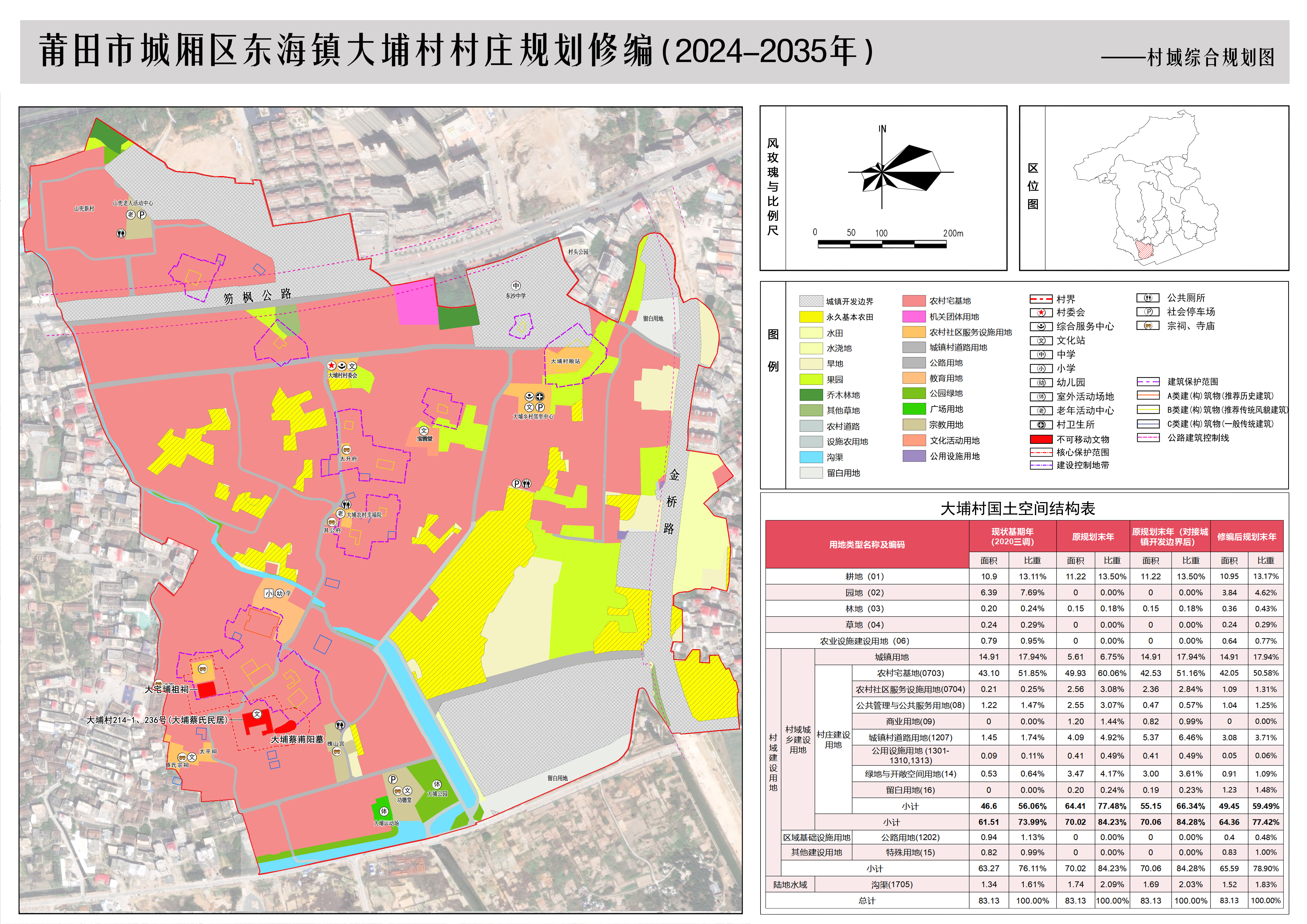 大埔村位于城厢区东海镇,辖大埔、磨顶、海头角、山兜等4个自然村。规划四至范围:东接东海和海头两村、西接东沙村、北接上图村、南临东海工业集中地,规划用地面积约83.13公顷。《莆田市城厢区东海镇大埔村村庄规划修编(2024-2035年)》由华茗设计集团有限公司&福建岚栖规划设计有限公司编制。按照《中华人民共和国城乡规划法》、《福建省村庄规划编制指南(试行)》及《莆田市村庄规划动态调整机制 (试行)》等法律法规、相关文件要求,现将规划方案予以公示,征求公众意见,公示时间为2025年7月14日至2025年8月14日止。在公示期限内,村民若有意见,可来电或来信向莆田市城厢区自然资源局反映,最终修编方案以区政府审批为准。