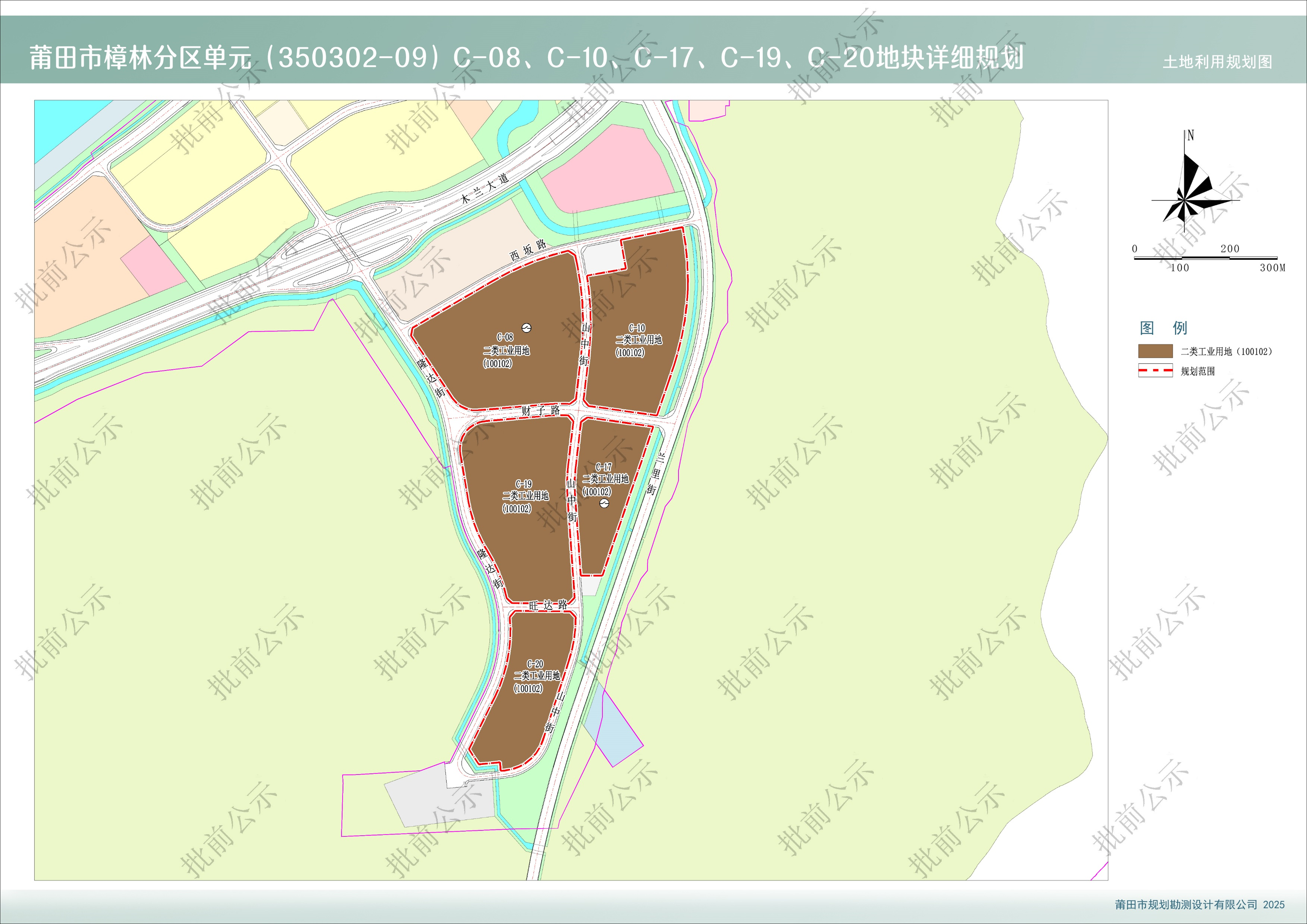 莆田市樟林分区单元(350302-09)C-08、C-10、C-17、C-19、C-20地块位于城厢区华亭镇,四至范围:东至排洪渠绿化带,西至隆达街,南至山中街,北至西坂路,规划总用地面积约30.45公顷。