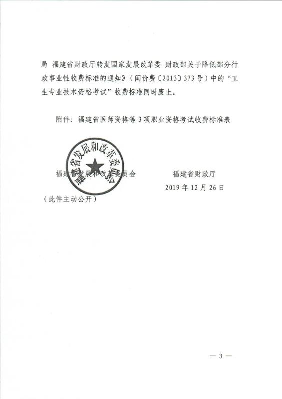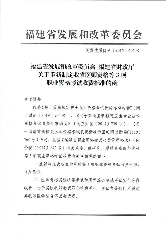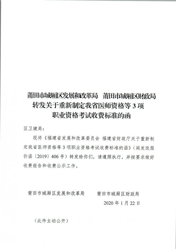 莆田市城厢区发展和改革局 莆田市城厢区财政局转发关于重新制定我省医师资格等3项职业资格考试收费标准的函