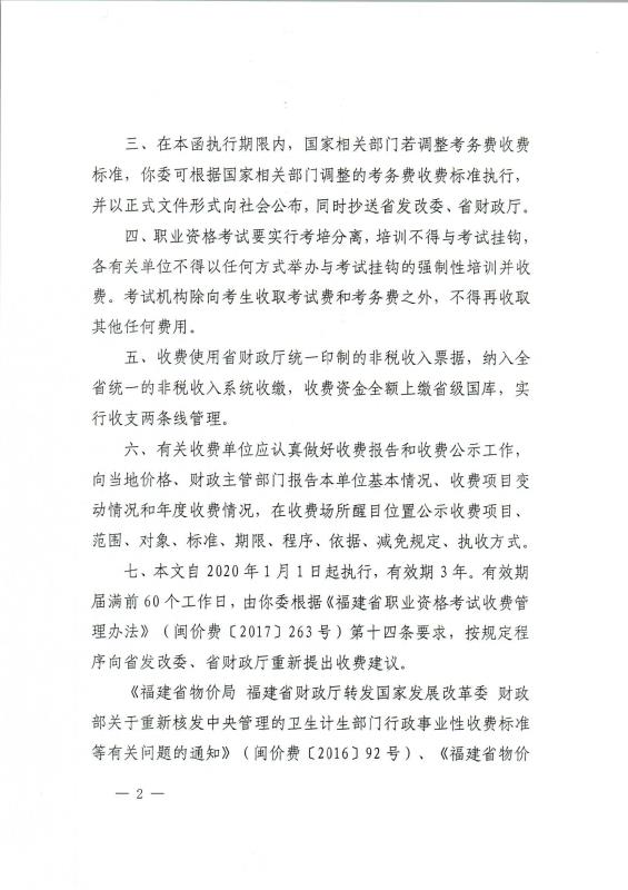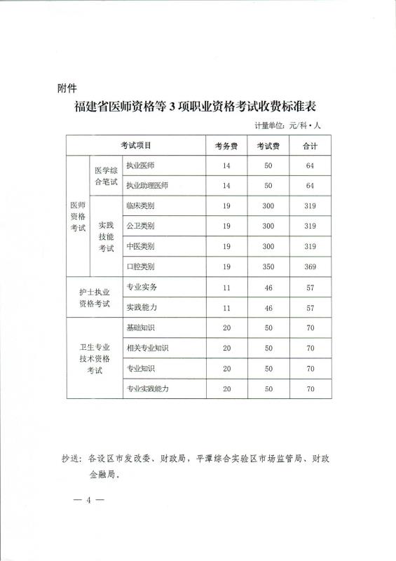 转发关于重新制定我省医师资格等3项职业资格考试收费标准的函