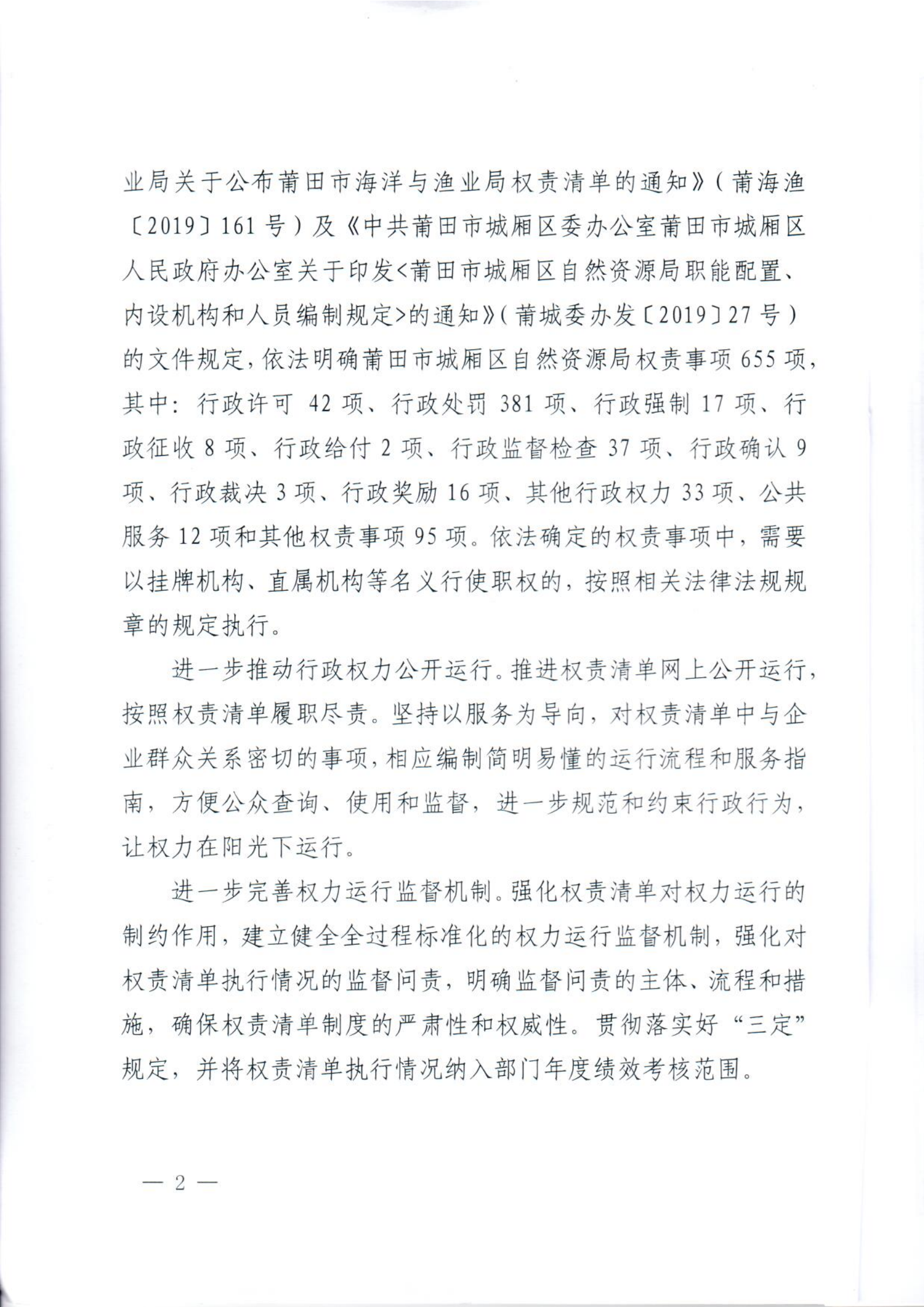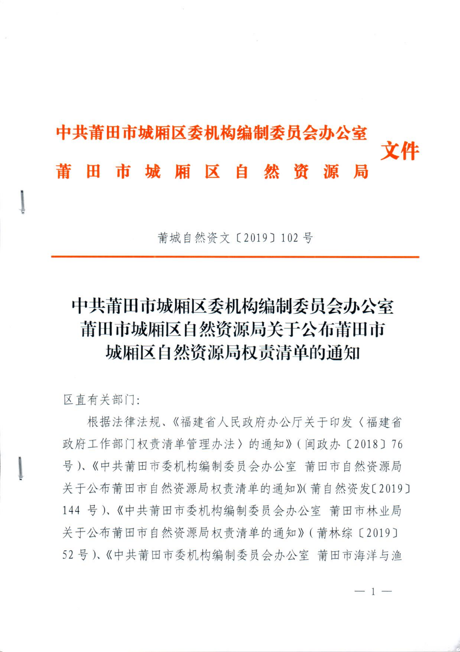 莆城自然资文[2019]102号—关于公布城厢区自然资源局权责清单的通知.doc