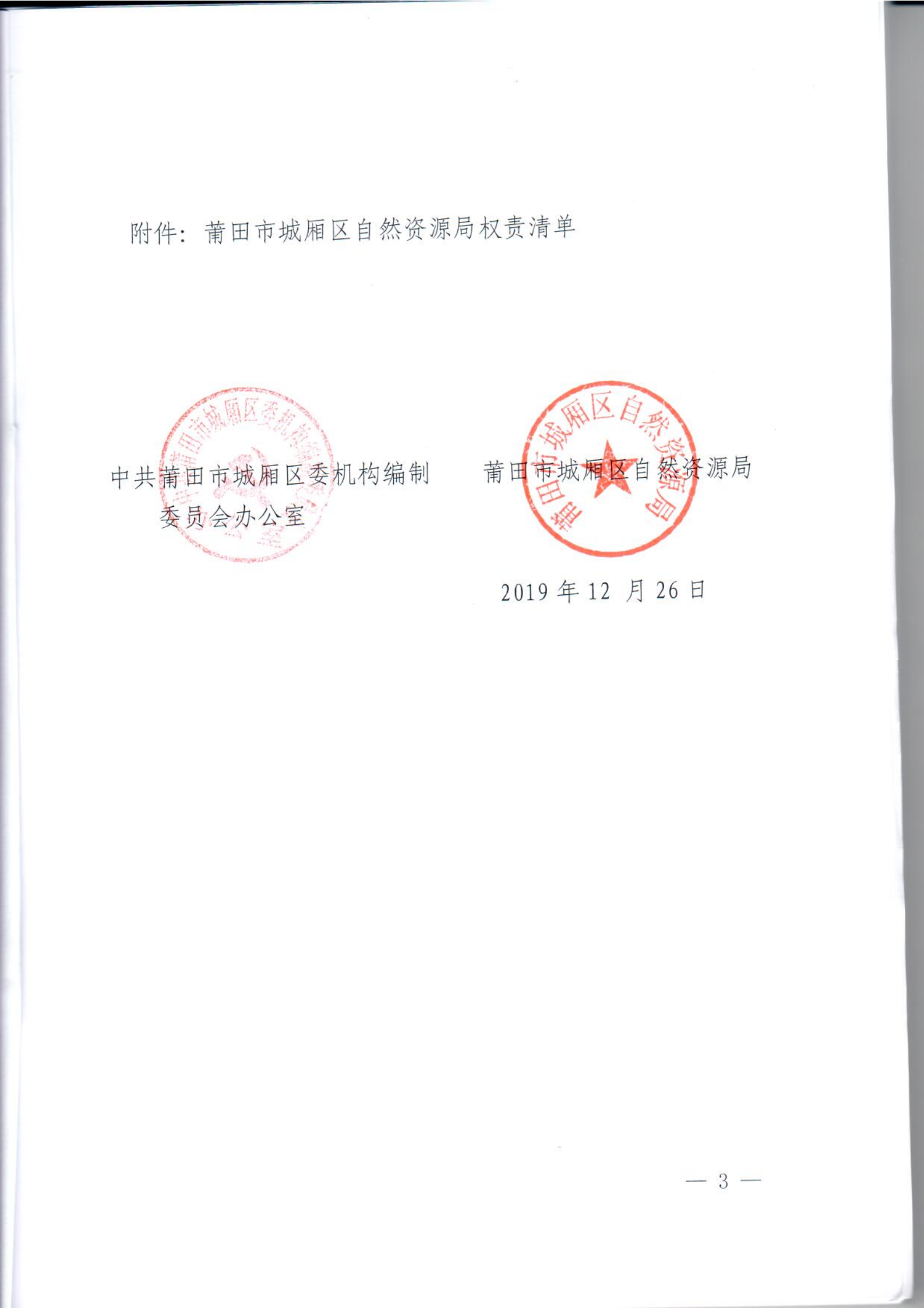 中共莆田市城厢区委机构编制委员会办公室莆田市城厢区自然资源局关于公布莆田市城厢区自然资源局权责清单的通知