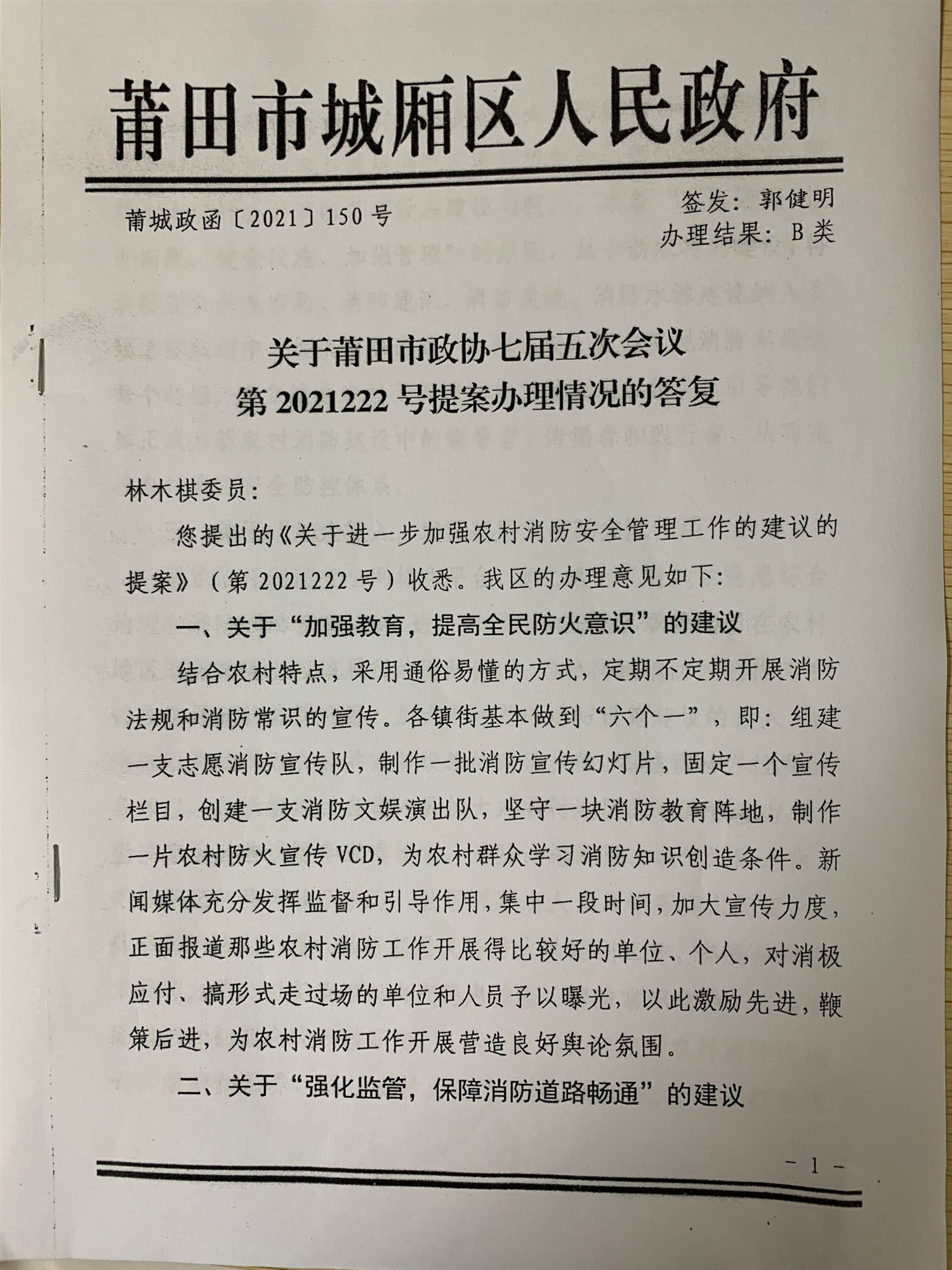 关于莆田市政协七届五次会议第2021222号提案办理情况的答复
