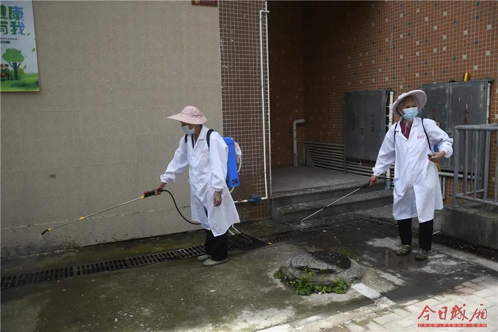当天上午,霞林街道、下黄社区同时开展爱国环境卫生整治与除四害消杀活动。工作人员对社区内排水渠、绿化带、垃圾回收点等卫生死角进行消毒灭杀,改善社区周边公共区域卫生环境。