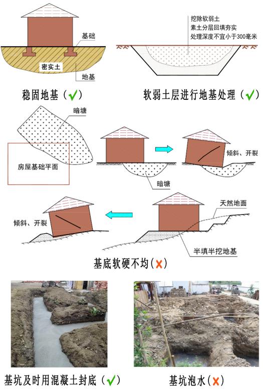 筑完基础速回填,水泡曝晒要避免。