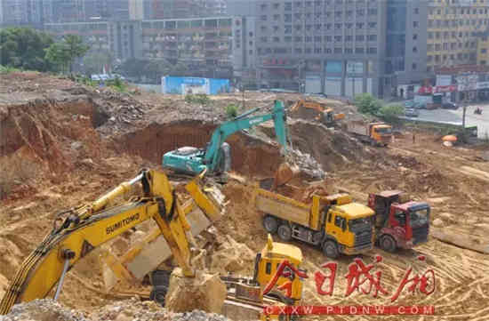 5月4日,城厢区霞林街道荔华东大道莆田西棚户区改造项目现场,数台挖掘机正在紧张作业,排成长龙的大型运输车来回穿梭其中,一派繁忙。